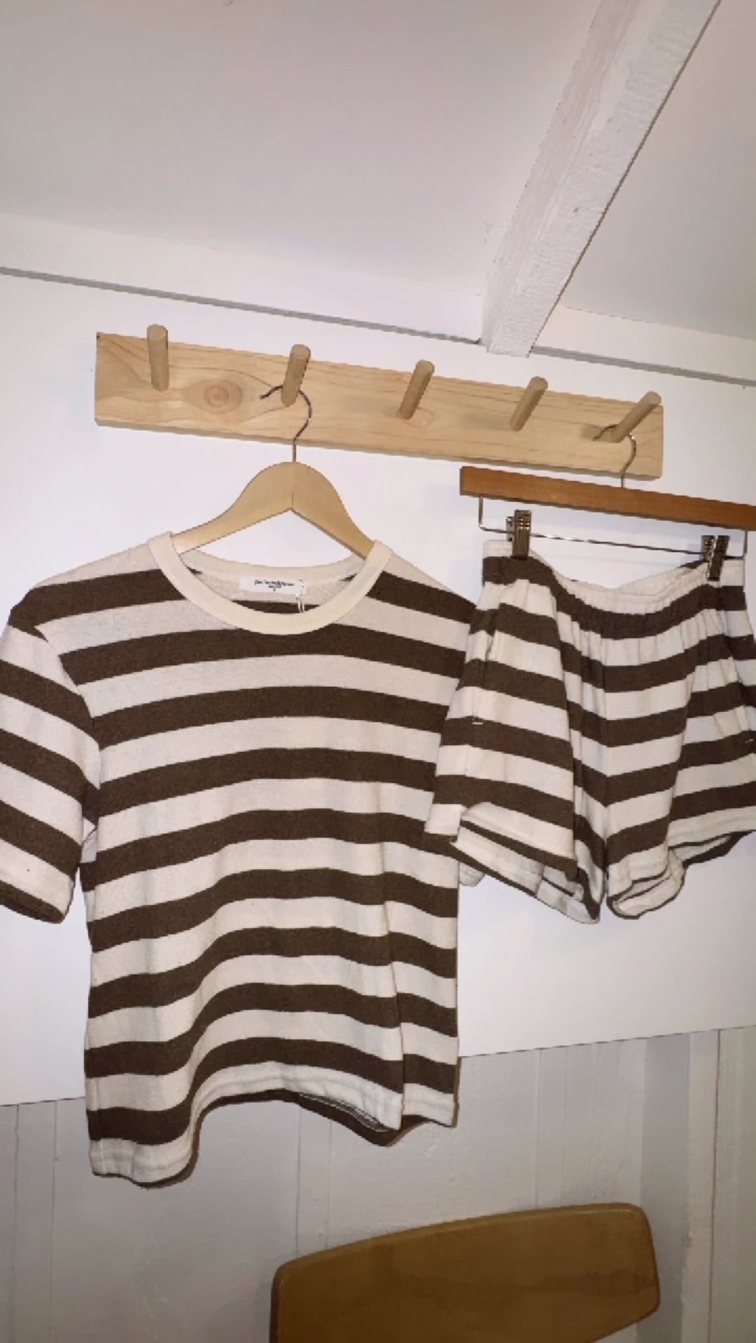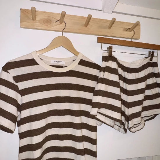 BRUSHED RUGBY SS STRIPE TEE SHIRT | MOCHA/NATURAL STRIPE