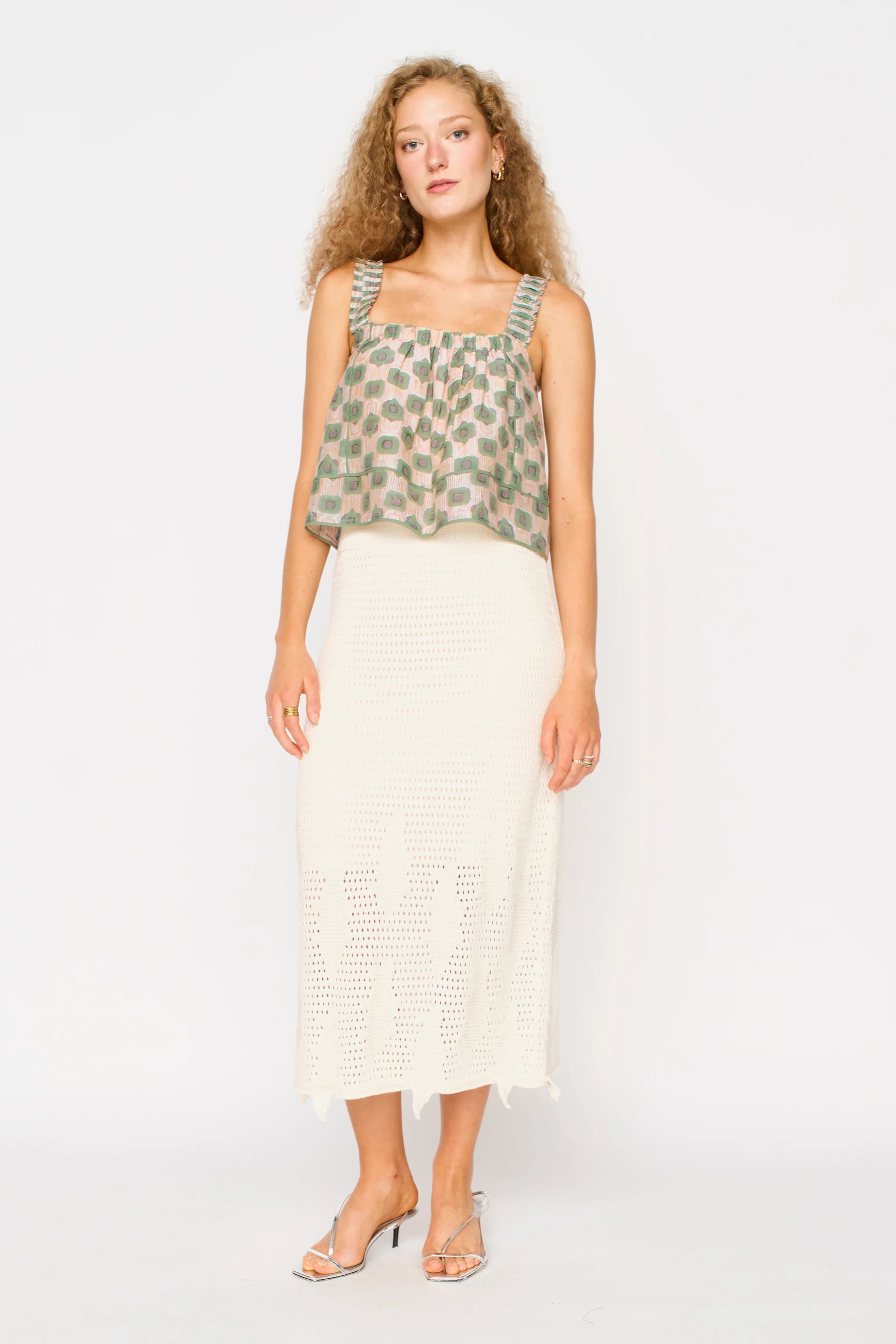 Each part of the process of this ancient technique takes place in this community: hand carving blocks out of wood, hand printing the fabric using Azo-free dyes, and washing and setting the final textiles. Nature plays an important role in the process, from mineral rich water and the sun’s rays to plants and the earth, all used in various stages of printing. - Dry clean using petroleum-based solvents only.