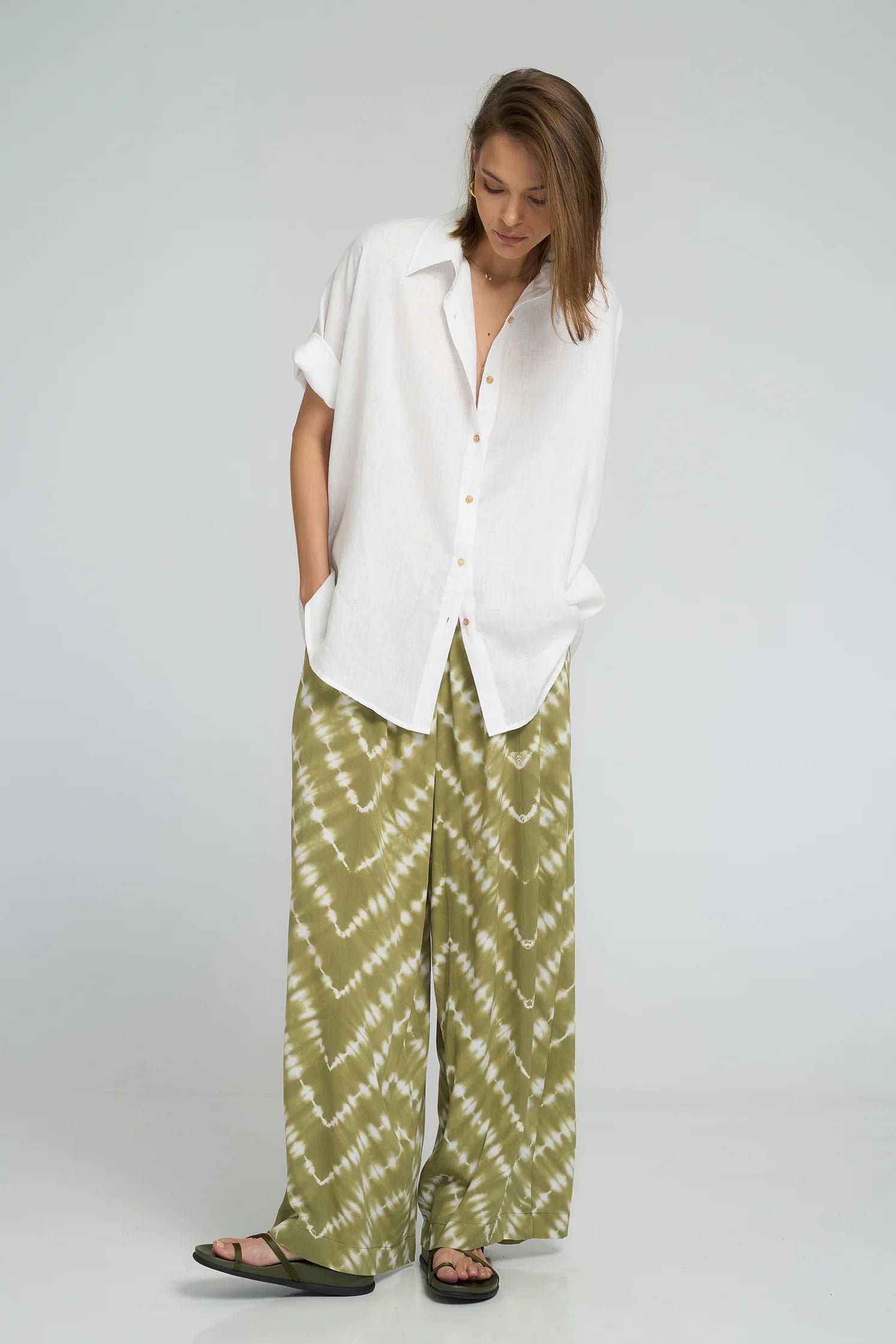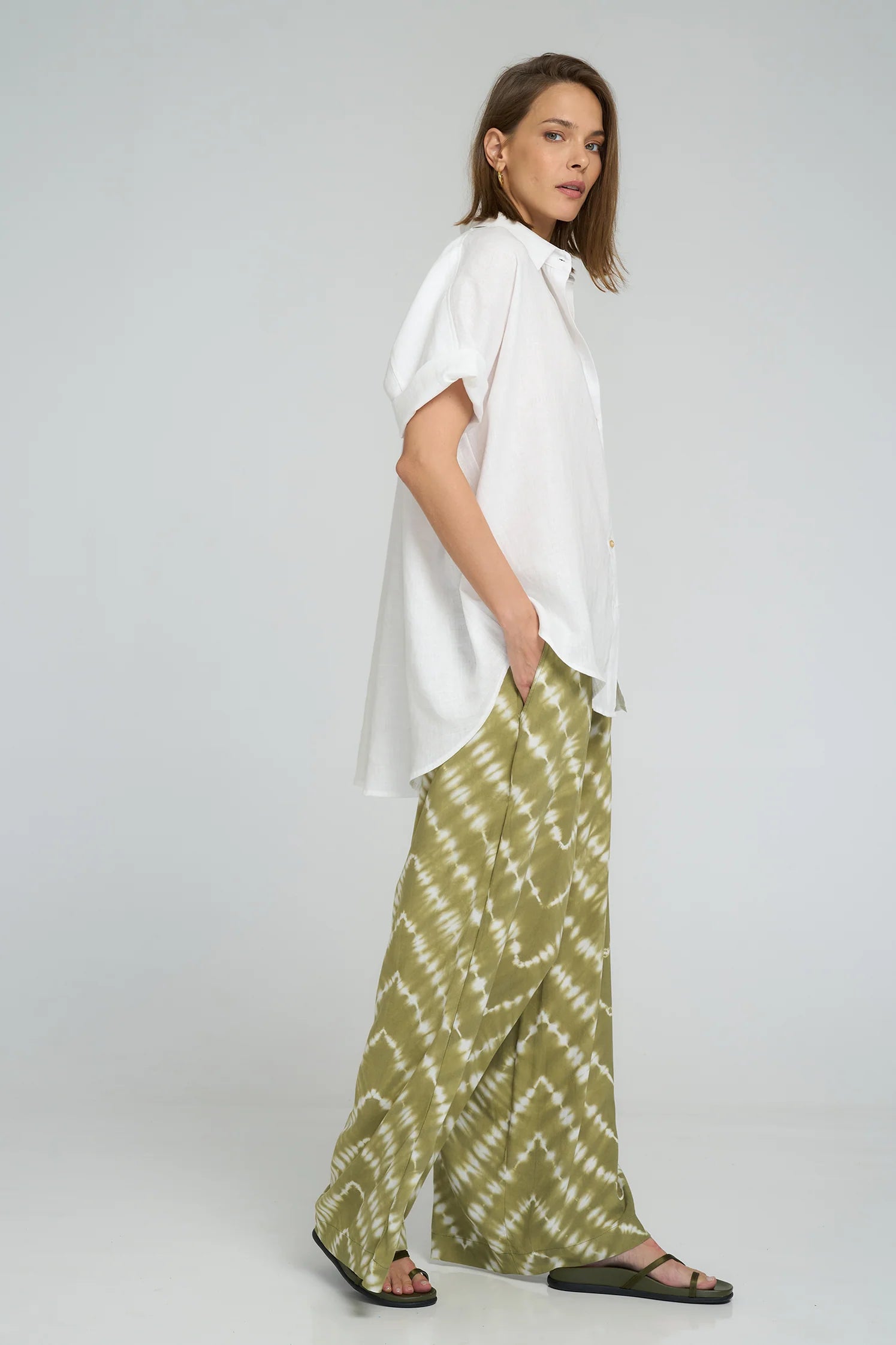 The Flynn Pant in Celestial Tie Dye Matcha Green is by Lilya